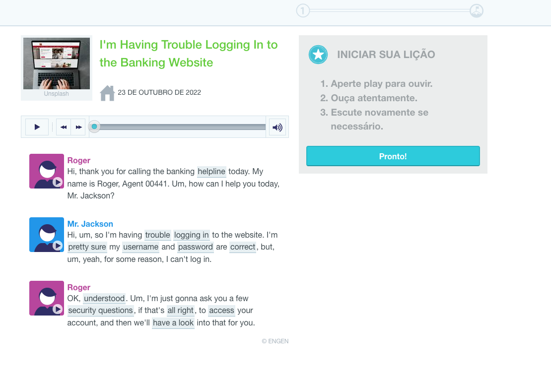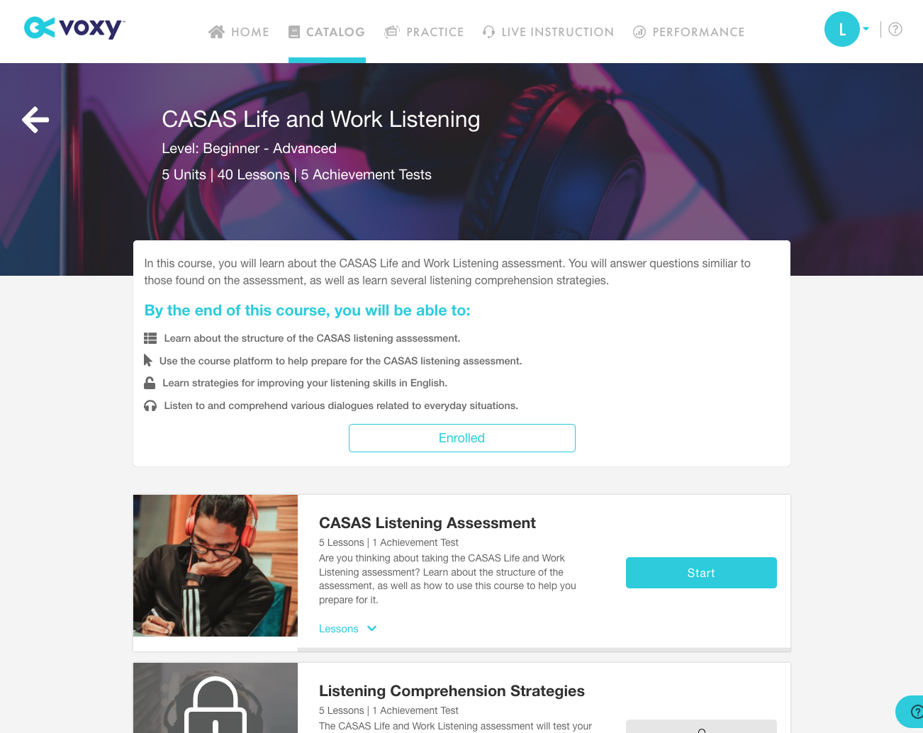As Voxy uses their own internal proprietary software, I have only included screenshots of the main homepage of the course as well as individual lessons and activities.